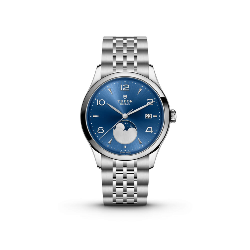 TUDOR 1926系列錶面盡顯帝舵表注重細節、一絲不苟的態度。圓拱形的盤面增添復古風情,巧妙回溯品牌追求精致細節的傳統。棱面箭形鐘點標記之間則鑲飾有立體偶數阿拉伯數字。在豐富細節的加持下,TUDOR 1926系列錶面對比鮮明,引人矚目,呈現出光影交織的獨特魅力,並與相應色系的劍型指針互為補充,和諧統一。而全新月相指示盤更為腕錶入一抹新奇魔幻的色彩。